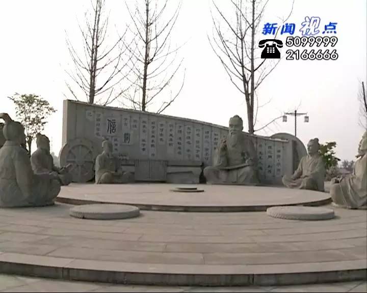 古宇湖北入口广场在依托古宇湖风景区的区位优势和自然资源景观的同时,还以儒家文化为主题,景观主轴线上有孔子杏坛讲学,还有二十四孝雕塑群。眼前这一圈雕塑,就是对传统文化"孝道"的阐释。